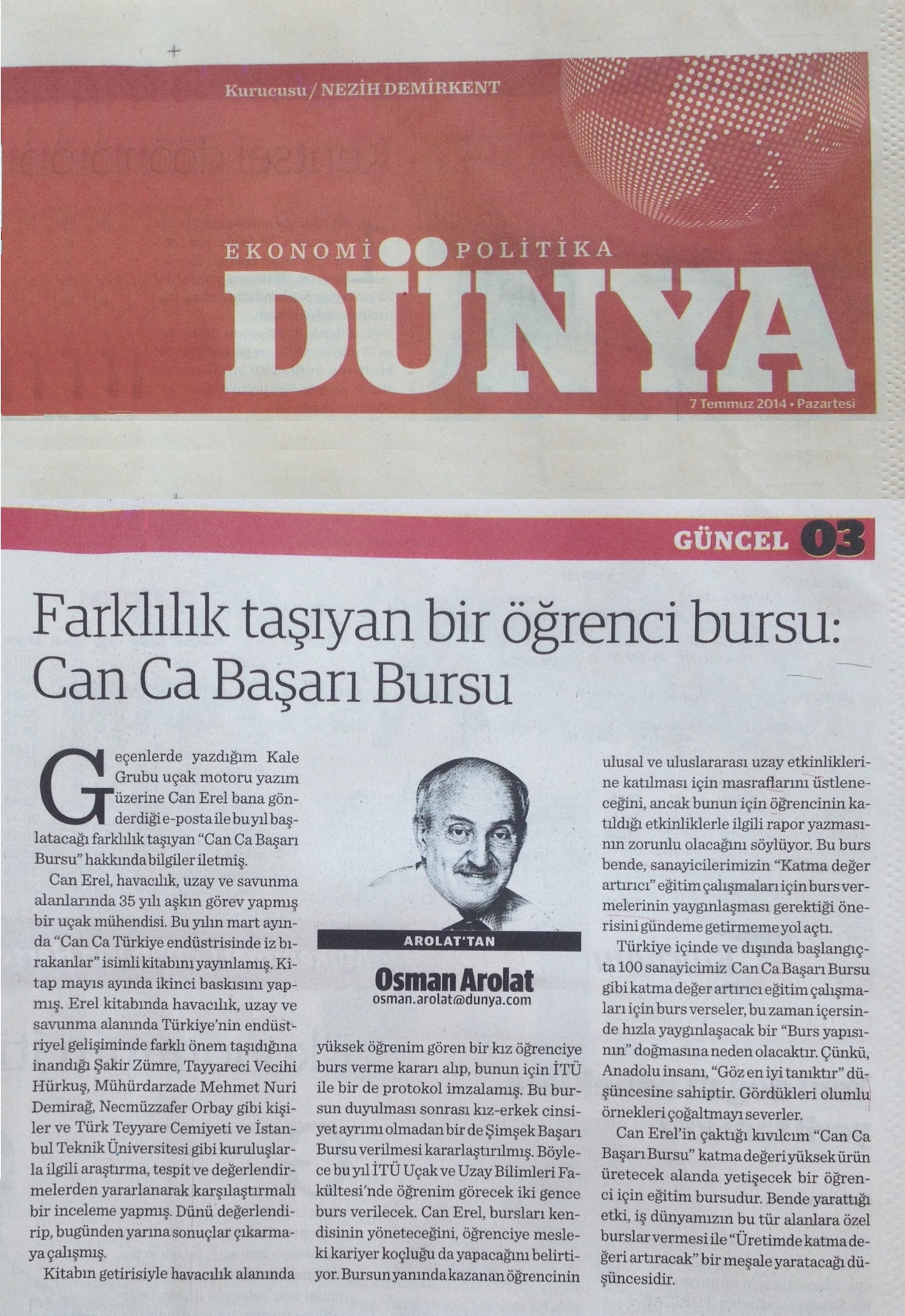 ✈ İTÜ Vakfı Dergisi #65 'CAN'CA Başarı Bursu' @ 31.08.2014