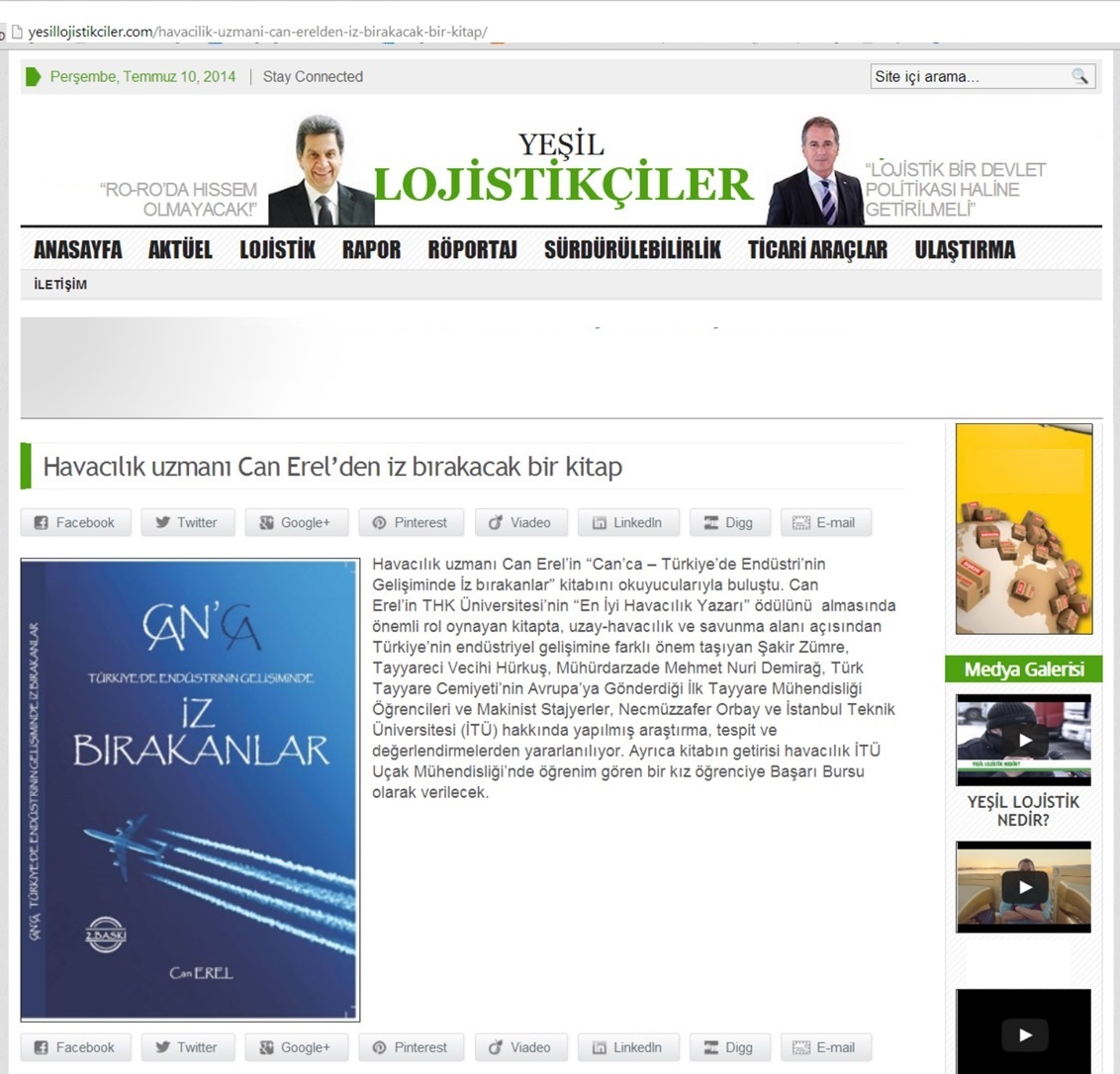 ✈ Yeşil Lojistikçiler 'Havacılık Uzmanı Can Erel’den İz Bırakacak Bir Kitap' @ 10.07.2014