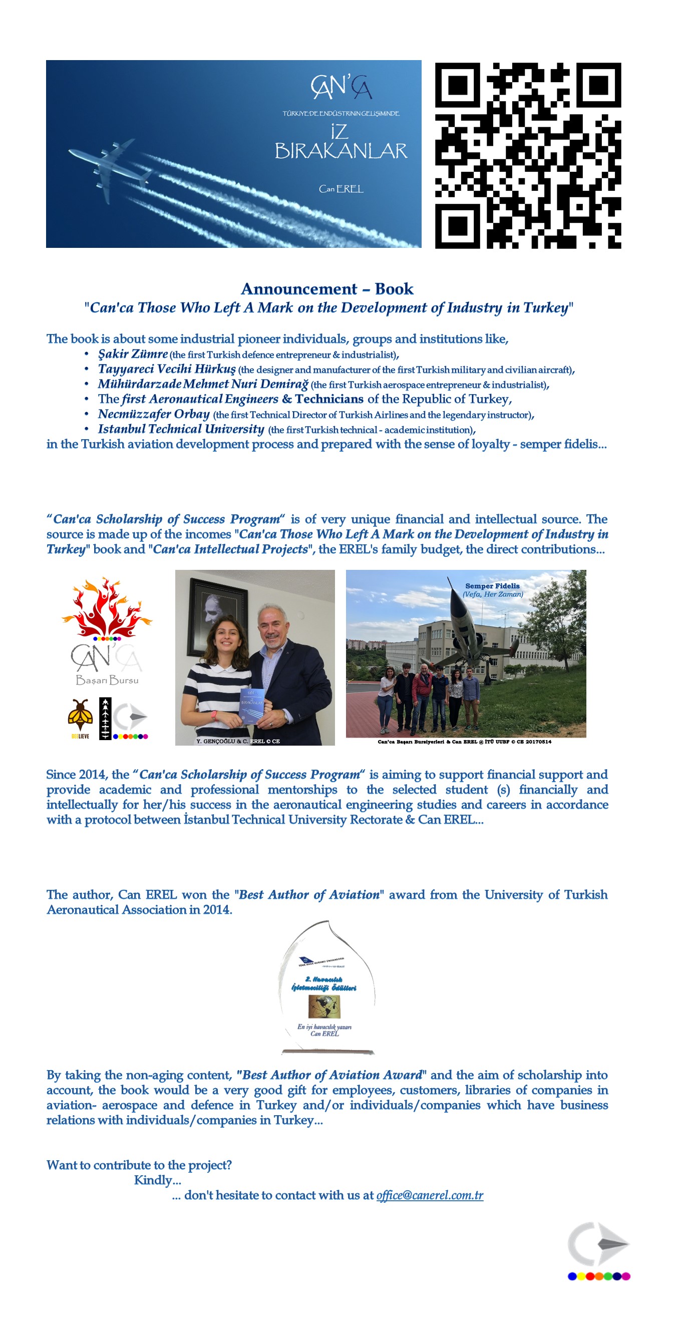 ✈ İTÜ Mezun Bülteni 'Makina Fakültesi 1982 Uçak Bölümü Mezunumuz Can Erel 'den İZ BIRAKANLAR Kitabı' @ 15.05.2014